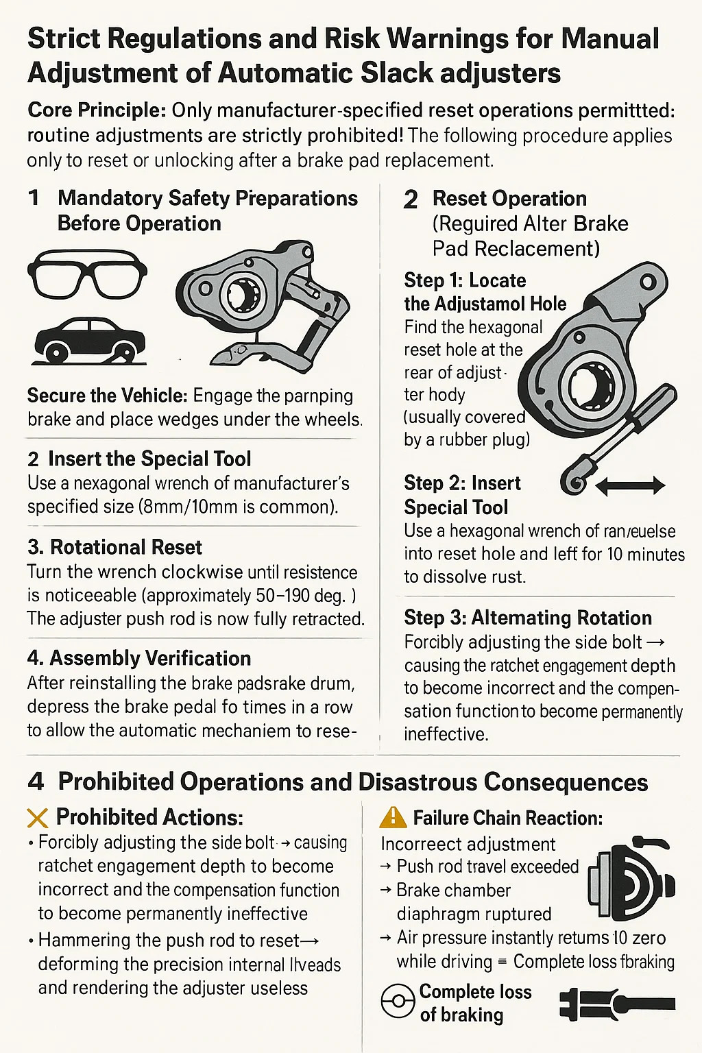 Strikta regler och riskvarningar för manuell justering av Automatiska slackjusterare